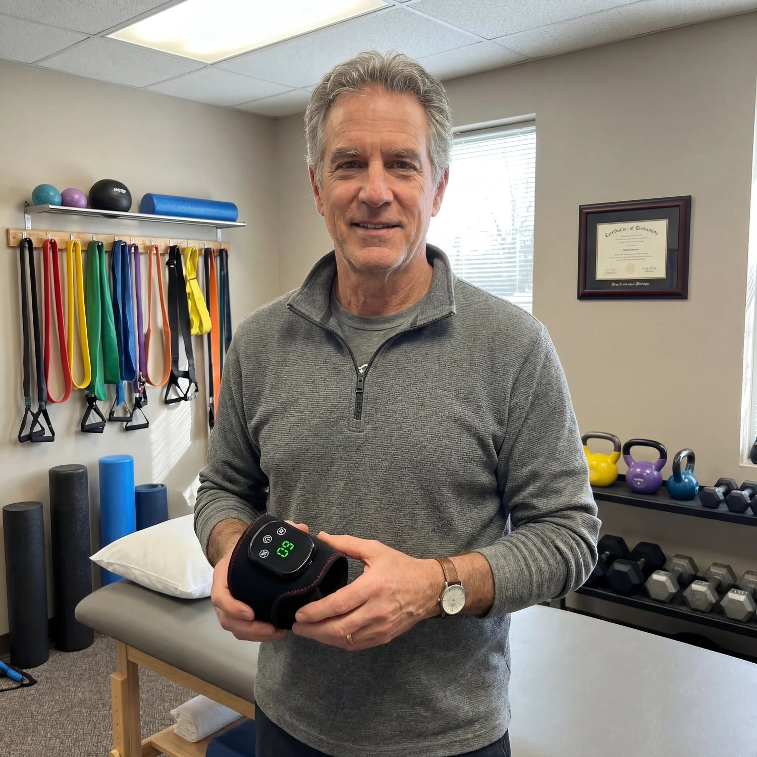 As a PT, I knew exactly what could help, heat therapy for circulation, vibration for nerve stimulation, and compression for support. But with her work schedule, she didn't have time for multiple PT sessions every week.